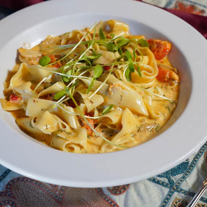 Great food! Pretty beautiful atmosphere. Great menu with so many amazing options like a shallot sun dried tomato pasta, fried goat cheese appetizers and baked Brie. Their menu is a gem and the service was great too. Lovely restaurant for a special occasion or a weekend dinner.