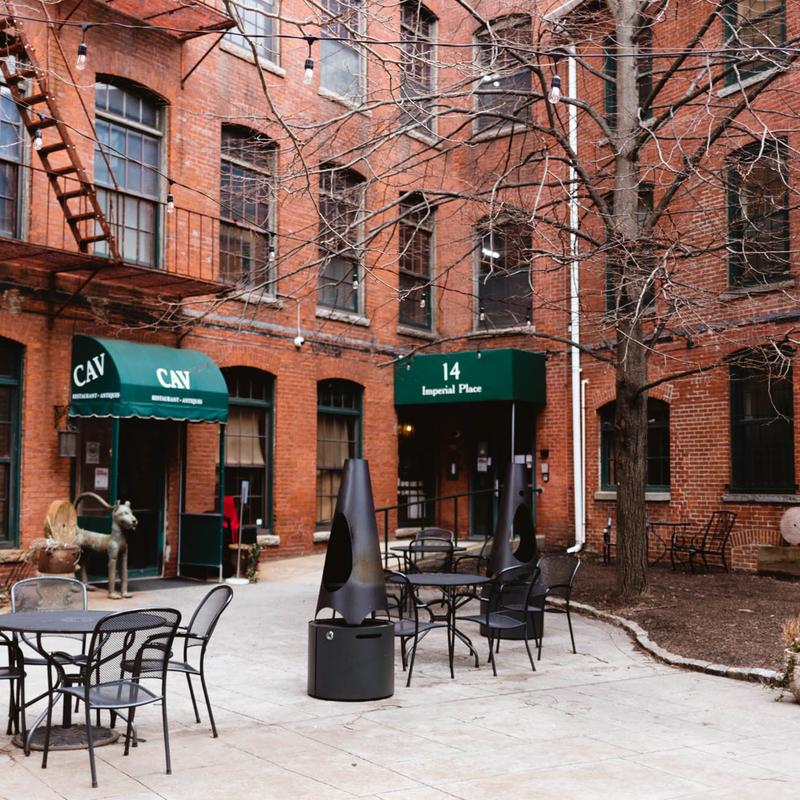 A staple in Providence since 1989, we serve eclectic, contemporary, award-winning cuisine in a unique and historic loft. CAV (pronounced CAHV) stands for Cocktails, Antiques, Victuals.