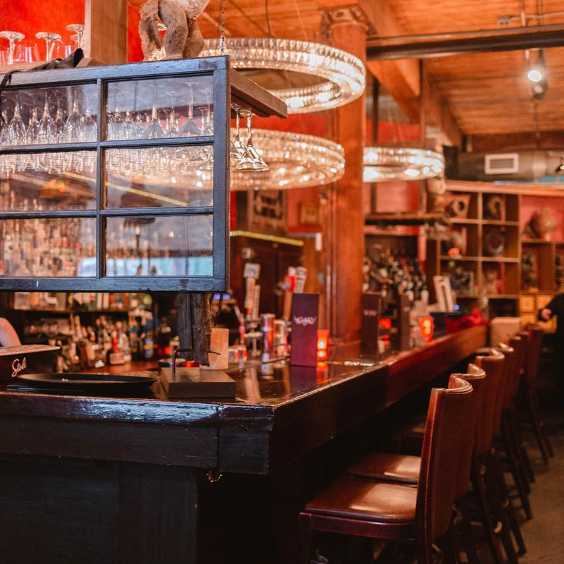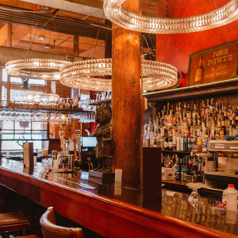 The historic mahogany bar (the full front bar) at CAV dates back to the nineteenth century. Purchased from Irreplaceable Artifacts in 1990, it came with a provenance, showing this bar was originally from Pete’s Tavern – the oldest Tavern in New York.
